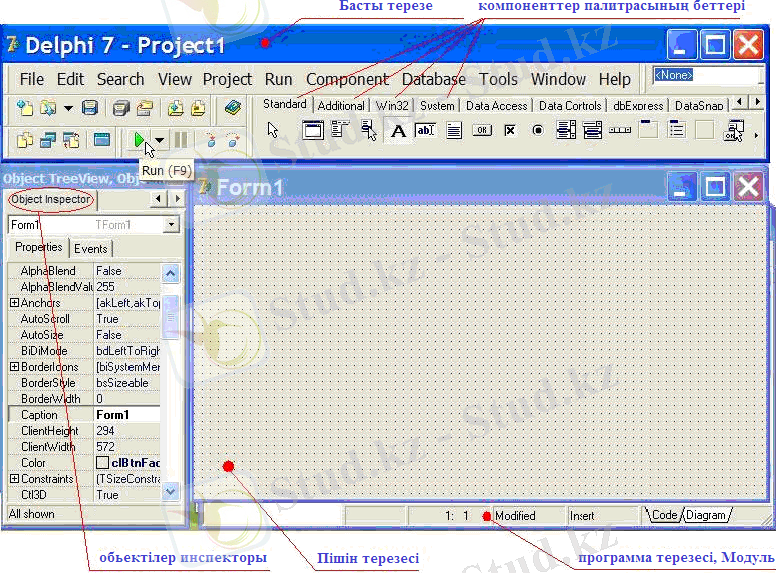 1. Delphi - дің басты терезелері.