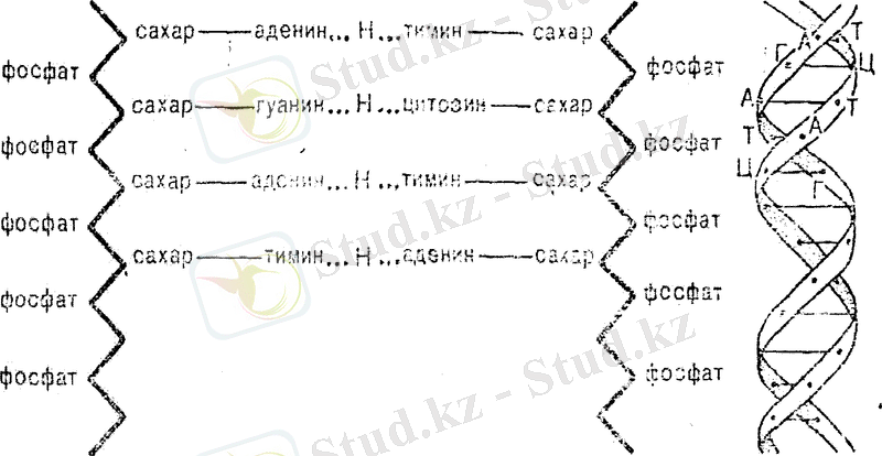 2-сурет. ДНК молекуласының химиялық құрылымының сызба нұсқасы.