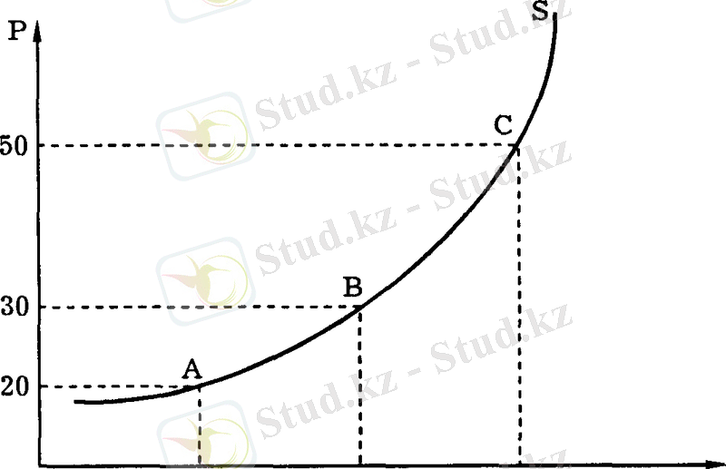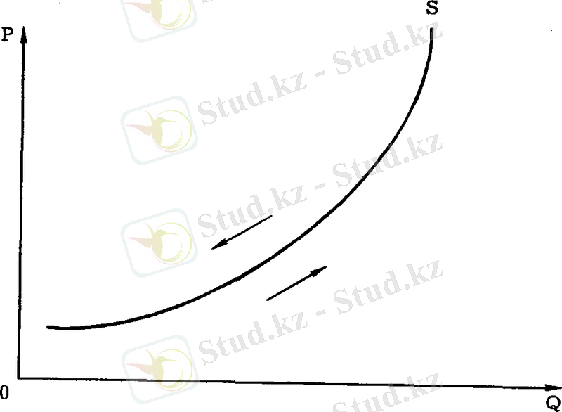 Сурет 1. Ұсыныс қисығы (ұсыныс көлемінің бағаға тәуелділігі)