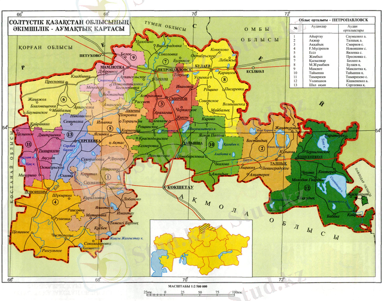 Сурет 1- Солтүстік Қазақстан облысының әкімшілік аудандар