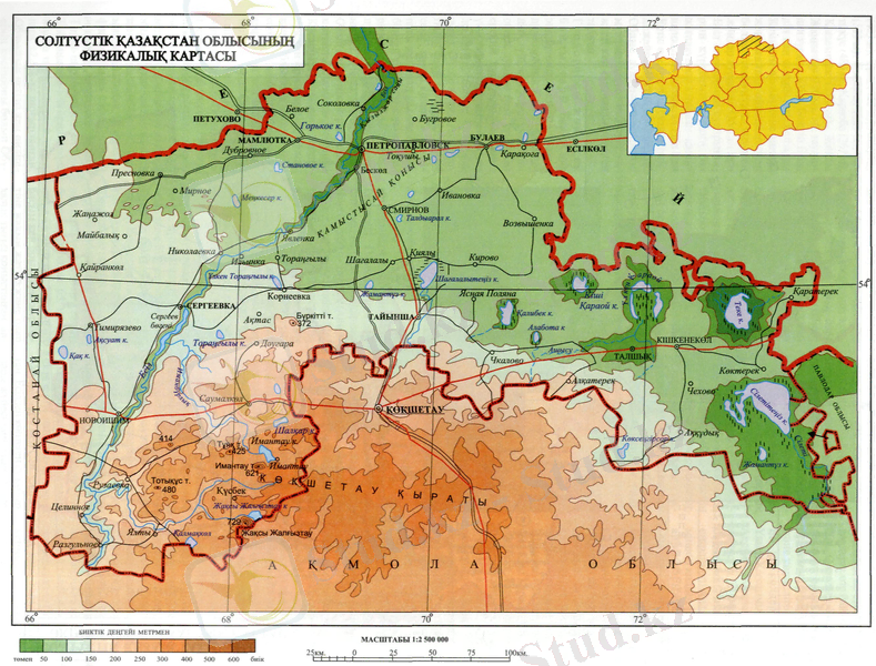 Сурет 2 - Солтүстік Қазақстан облысының физикалық картасы