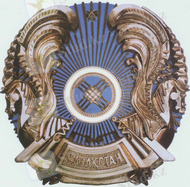 Елтаңбада көгілдір түс те бар. Ол алтын түсті рең-мен әдемі жарасым тапқан.