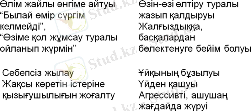 Өзін-өзі өлтіруге ниеттенудің кейбір белгілері: