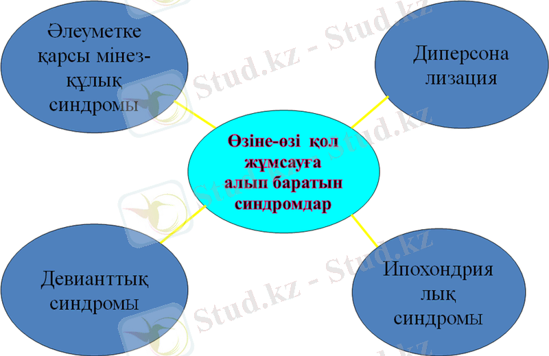 - Алкогольді, психотропты дәрілерді және есірткіні пайдалану нәтижесінде пайда болатын жеке бастың қорғаныш тетігінің бұзылуы
