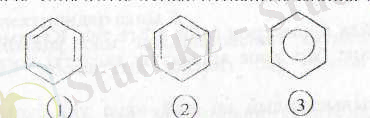 резонансты гибриді болып келеді, сондықтан сақина ішіндегі дөңгелек делокализацияланған 6 электронның бұлтын көрсетеді. Әрі қарай Кекуле формуласын (1 және 2) немесе 3 формуланы да қолданамыз.