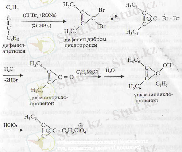 Д. Н. Курсанов пен М. Е. Вольпин синтездеген дифенилцикло-пропенон циклопропенил системасының туындысы болып табылады: