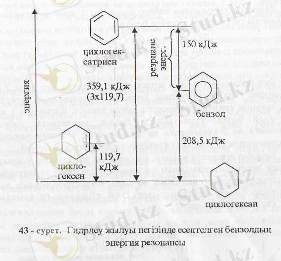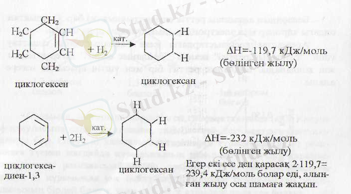 Егер циклогексатриен десек, онда бөлінетін жылу 3-119, 7=-359, 1 кДж/моль бөлу керек еді.