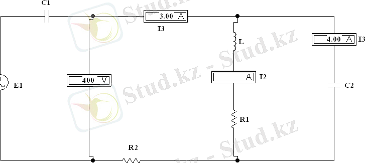 Төменде берілген суреттегі схема резонанс жағдайында тұр. Ондағы жиілік 796 Гц тең, сонымен қатар тізбектің қолданатын қуаты Р = 1200Вт. Қалған приборлардың мәні суретте көрсетілген. Осы схема арқылы резонанс кезіндегі екінші ток күшін (I2), жалпы кедергіні (R), индуктивтілікті (L) және сыйымдылықты (C) есептеу керек. Сонымен қатар эксперименттік тексеру жүргізу.
