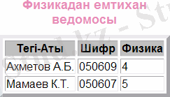 <caption><b><Font size=4 color=E88CB7>Физикадан емтихан ведомосы</caption></b>