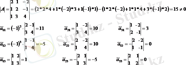• А матрицаның анықтауышын шығарамыз, егерде ол нольге тең болса, онда кері матрица шықпайды, керісінше болса, онда 3 пункке көшеміз.