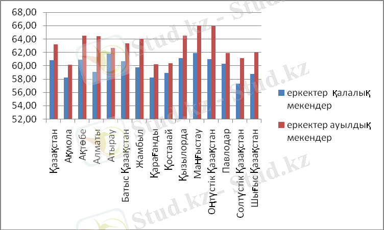 Республика бойынша еркектер жасының орташа ұзақтығы