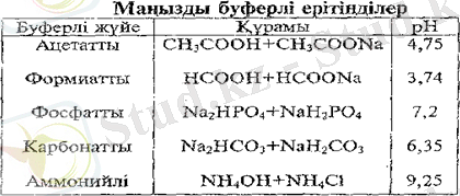 Буферлі ерітінділердің белгілі шамада рН-ты ұстау қасиеті де міне осында жатыр.
