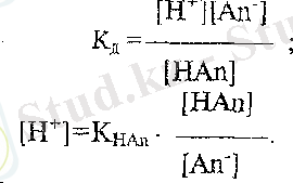 Мұндағы [НАп] - диссоциацияға ұшырамаған қышқыл молекулаларының тепе-теңдік концентрациясы [НАп] =С НАп ; ал [А - ] - тұз және қышқыл диссоциацияланғанда түзілетін аниондардың тепе-тендік концентрациясы, шартты түрде [А - ] ꞊ С түз десек, онда жоғарыдағы тендеуге