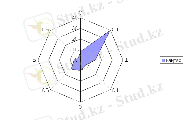 Төмендегі суреттен (сурет-3) көріп отырғандағымыздай қаңтар айында СШ ба-ғыттағы, шілде айында СШ бағыттағы, ал жыл бойына СШ бағыттағы жел-дер басым болатындығын байқаймыз.