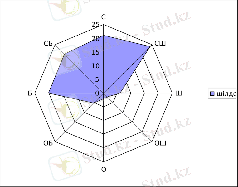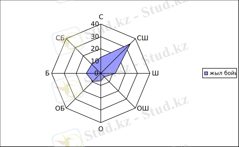 Төмендегі кестеде (кесте-3) Қызылорда облысының жел бағыты мен штиль саны берілген. Осы мәлімет бойынша жел бағытының графиктік сызбасын көруге болады.