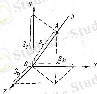 1-сурет. Түзу сызықты қозғалыс кезінде А денесінің орны не s кесіндісі арқылы, не оның координаталар осьтеріне түсірілген s x , s y s z проекциялары арқылы анықталады.
