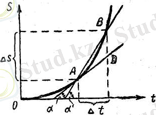 мұндағы α - Ot oci мен жолдың уақытқа тәуелділігін көрсететін қисықтың А нүктесінен жүргізілген жанаманың жасаған бұрышы.