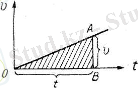 Бір қалыпты айнымалы қозғалыста жүрілетін жолды анықтайық. Жеңіл болу үшін бастапқы жылдамдық v 0 = 0 деп ұйғарайық; сонда (26) формула бойынша жылдамдықтың уақытқа графиктік тәуелділігі (w>0 десек) ОА түзуімен кескінделеді (6-сурет) . Солай болғанда, бұдан бұрынғы параграфта айтылған бойынша t уақыты ішінде жүрілген s жолы ОАВ фигурасының ауданымен кескінделеді. Біз қарастырып отырған жағдайдағы фигура үшбұрыш болғандықтан, оның ауданы мынаған тең: