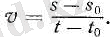 § 6. Түзу сызықты айнымалы қозғалыс. Айнымалы қозғалыс кезінде бірдей уақыт аралықтарында дененің жүрген жолдары бірдей болмайды. Мұндай жағдайда қозғалыстың орташа жылдамдығы деген ұғым ендіруге болады. Айнымалы қозғалыстың берілген t - t 0 уақыты аралығындағы орташа жылдамдығы, дене бір қалыпты қозғала отырып, айнымалы қозғалыс кезіндегідей, осы t - t 0 уақыты аралығында да s - s 0 жолын жүре алатын бір қалыпты қозғалыстың жылдамдығына тең. Сонымен, қозғалыстың орташа жылдамдығын v әрпімен белгілеп, былай жазуға болады: