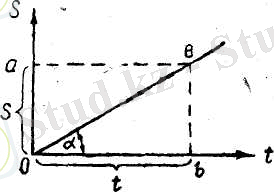 Жолдың уақытқа сызықтық тәуелділігін графикпен көрсетуге болады. Абсциссалар осінің бойына t уақытын, ординаталар осінің бойына s жолын саламыз (2-сурет) . Сонда (5а) формулаға сәйкес, 5 жолының t уақытына тәуелділігін координаталар басынан өткен ОВ түзуі көрсетеді. Абсциссалар осінде Ob кесіндісімен, кескінделген t уақыты аралығында дене s жолын жүреді, ол жол Оа кесіндісімен немесе оған тең bВ кесіндісімен кескінделеді.