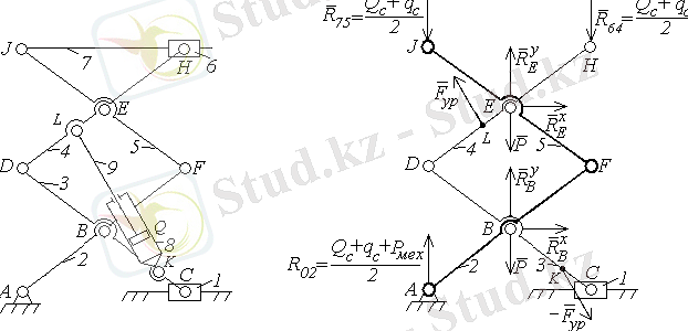 ) сан мәндері аса жоғары. Бұл массасы 150кг жүкті көтеру үшін 4798 кгС тан аз емес күш қажет деген сөз. Ал топсалардағы және 2 сырықтағы (кинематикалық жұптардағы) үйкеліс күштерін жеңу үшін одан да көп күш қажет болады.