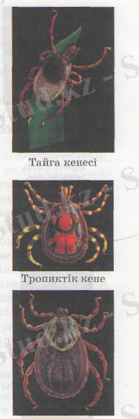 Тайга кенесі адамға ең қауіпті ауру - энцефалитті (ми ауруы) жұқтырады (19-сурет) . Таби-ғатта тайга кенесі әр түрлі жануарлардың денесінде орнығады. Сорған қаны арқылы бір жануардан екінші жануарға энцефалит қоздырғышын таратады. Бірақ бұдан жануар ауырмайды. Осылай табиғатта ауру қордасы пайда болады. Кене энцефалитінің вирусы -тасымалдаушы жәндік арқылы таралатын қоздырғыш. Кене дернәсілі, нимфасы және ересек түрі белгілі бір аумақта бір жануарлардан екінші жануарларға ұзақ уақыт айналымда болады. Жұқпа қоздырғышы сақталатын осындай аумақ қандай болса да, бір аурудың табиги қордасы деп аталады.