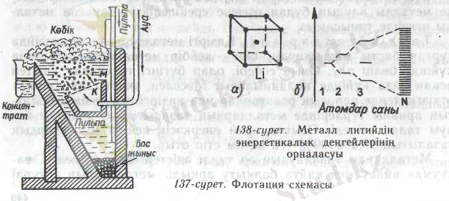 Металдардағы химиялық байланыстың табиғаты, әрі олардағы ерекшеліктерді литийді мысалға ала отырып түсіндірейік. Литий кубтық көлемді центрлеген тор кұра кристалданады (138, а-сурет) демек, оның кубтың ортасында орналаскан 1 атомы көрші тұрған бұрыштардағы 8 атоммен байланыс түзеді. Кәдімгі ковалентті қос электронды 8 байланыс түзу үшін, ортадағы литий атомы 8 электрон жұмсар еді, ал оның бар болғаны бір ғана валенттік 2в' электроны бар. Кристалдық тор түзіп атомдар жақындасқанда көрші орналасқан атомдардың валенттік орбиталь-