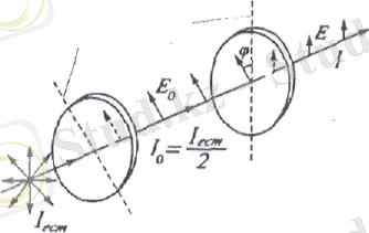 Жарық өз жолында поляризатор мен анализатор арқылы өтсін, ал поляризациялық жазықтық арасындағы бұрыш φ тең (3, 4 - сурет) .