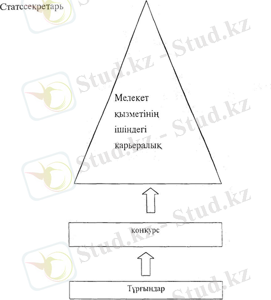 Халыкаралық тәжірибе көрсеткендей көптүрлілікте дүниежүзінде мемлекеттік қызметтің екі жүйесі бар - карьерлық Германия, Жапония, Австрия және басқа елдерде әрекет етеді және позициялық, Ұлыбритания, АҚШ және Канада елдерінде әрекет етеді. Карьерлік жүйенің ерекшеліктері (1 сурет) -мемлекеттік қызметтің төменгі қызметіне ие болу үшін конкурстық емтихан тапсыру, белгілі қызметке өмірлік сайлау (саясидан басқа), қызмет ішіндегі карьералық өсім, професионалдылықтың жоғары деңгейі, кадрларды мақсатты мамандандыру, консервизм және бюрократиялық иерархия.