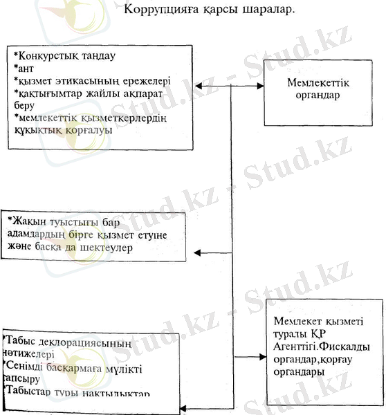 Мемлекеттік қызметкер жоғарыдан келген бұйрықтың засыздығы туралы күмәндаса, онда бұл жағдай туралы өзбасшысыны немесе бұйрық берген басшысыңа қолхат жазып, жазып бергені туралы міндеттемені талап етуі керек. Осы жылдың басынан әр мемлекеттік органда дисциплиналық комиссия жұмыс істеу керек. Бұл комиссия мемлекеттік қызметкерлердің дисциплиналық қателіктерді жасау жағдайларын жан-жақты талдап қорытынды баға беруі керек. Конкурс - мемлекеттік қызметке тұру немесе қызметте жылжу кезіндегі коррупцияға шара болып табылады.