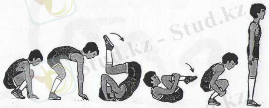 3. Қолды тіреп отыру және төмен басылып отыру қалпынан артқа қарай домалап түсу.