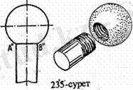 1-мысал. Цилиндр тәрізді сапқа сфера пішінді тұтқа бекітілген (235-сурет) . Бұл беттердің қиылысу сызығы шеңбер.