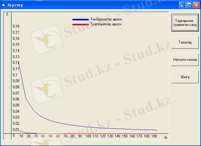 Анықталған интегралдарды Visual Basic тілінде трапеция және тікбұрыш әдістерімен жақындау және Ньютон-Лейбниц формуласы бойынша қателерін талдау