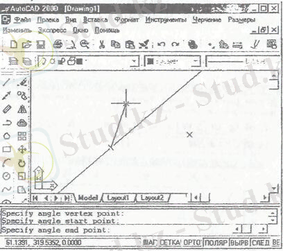 Команданың бірнеше сауалы: нүктені көрсетіңіз немесе [горизонталь, вертикаль, бұрыш, бисектрисаны/жылжыту] : (Specify- a point or [Her/vet/and/bisect/off set] :) .