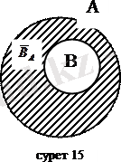 Егер А және В жиындарын Эйлер-Венн диаграммалары арқылы кескіндесек, онда А жиынындағы В жиынының толықтауышы штрихталған (15-сурет) бөлік болады.