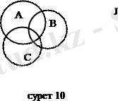 Универсал I жиынын тік төртбұрыш түрінде, ал оның ішкі жиындарын - осы тік төртбұрыштың ішіндегі дөңгелектер түрінде кескіндеуге келісейік. Онда біздің қарастырып отырған I, А, В, С жиындарын графикалық түрде мынадай (10-сурет) етіп кескіндеуге болады.