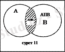 Егер А және В жиындарын Эйлер-Венн диаграммалары арқылы бейнелесек, онда А∩В жиыны штрихталған облыс болады (11-сурет) .
