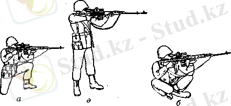 68-сурет. Тізерлеп, тұрып жөне отырып ату кезінде винтовканы ұстау әдістері: