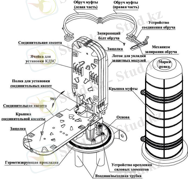 4 сурет. Тұйықталған оптикалық кабельдік муфтаның құрылымы