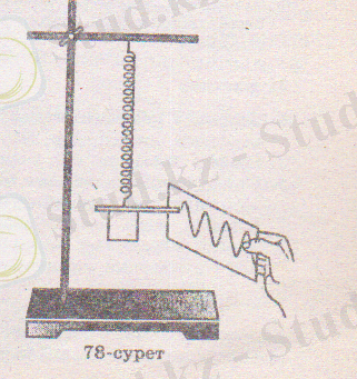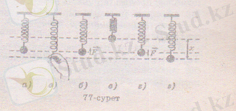 Дененің оған әрекет етуші күштер векторларының қосындысы нөлге тең болған кездегі күйін тепе - теңдік күй деп атайды (77, а-сурет) . Жүкті тепе - теңдік күйден шығарып төмен ығыстырғанда (77, ә-сурет), серіппе деформациясының ұлғаюы салдарынан