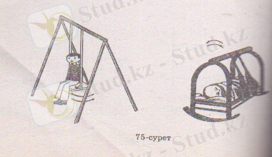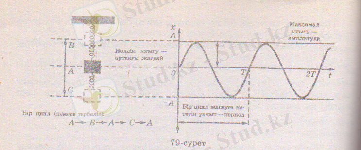 І. Күнделікті өмірде біз тербелмелі қозғалыстар немесе жай ғана тербелістер деп аталатын қозғалыстармен жиі ұшырасамыз. Мәселен, жел соққан кезде талдың бұтақтары тербеледі, бір шеті қысқышқа бекітілген металл пластинаны майыстырып тұрып жібере салса, ол да тербеліске түседі. Сол сияқты вертикал күйінен ауытқыған әткеншек, бесік (75-сурет), қабырға сағатының маятнигі, серіппеге ілінген жүк, домбыра шегі, таразы сілтемесі және т. б. тербеледі.