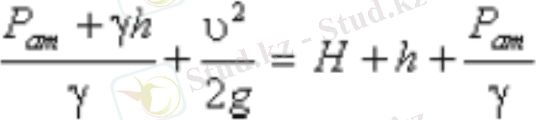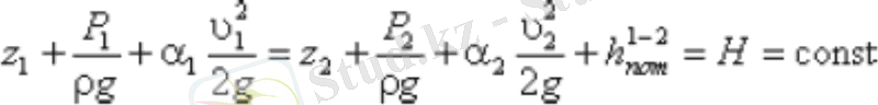Реал сұйықтыққа арналған Бернулли теңдеуі келесі түрде жазылады: