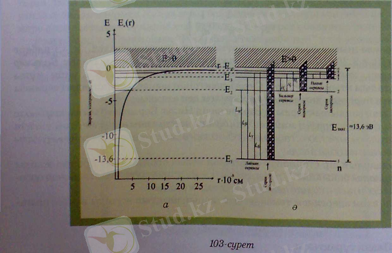 электронның ядродан г қашықтығына ғана байланысты. Е п (г) функциясы графиктік түрде электрон ядроға жақындағанда, яғни г кемісе шексіз кемитін (абсолют шамасы жағынын өсетін) сызықпен бейнеленеді(1-сурет) .