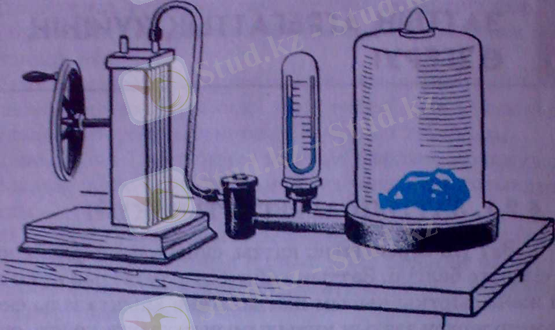 Газ өзіне бөлінген көлемді түгелдей алады. Оған тәжірибе арқылы көз жеткізуге болады. Үрленбеген ауа шарының мойнын жаксылап буып, ауа насосының қалпағының астына орналастырады (2. 1-сурет) . Қалпақ астындағы ауаны сорғанда шар томпайып, қалпақ астындағы бос көлемді толық ала алады. Тек ғарыштық газ жиынтыктары - Күн, жүлдыздарда плазма тартылыс күшімен ұсталып түрады.