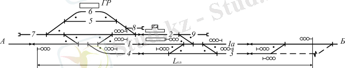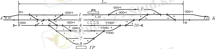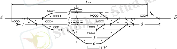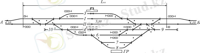 Сур. 2. 1. Схемасын аралық станциялар дара жолды желілер, бойлық орналасуымен қабылдау-жөнелту жолдары: Lпл - станциялық алаңның ұзындығы, м;