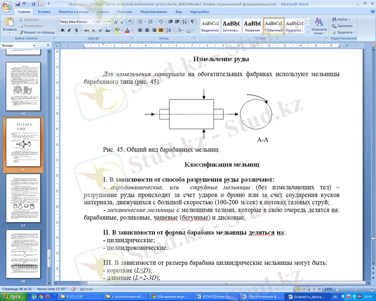 Байыту фабрикаларында шикізатты ұсақтау үшін барабан типті ұнтақтағышты қолданады, 1. 9-суретте көрсетілген.