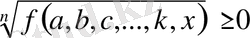 Теңдеуге енетін барлық тақ дәрежелі түбірлер түбір таңбасы астында тұрған өрнектің кез-келген нақты мәндерінде анықталған, түбір таңбасы астында тұрған өрнектің таңбасына қарай теріс таңбалы емес мәндерді де, теріс таңбалы мәндерді де қабылдай береді.