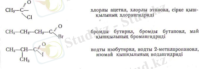 Сондай-ақ органикалық қышқылды хлорлы тионилмен әре-кеттестірсе қышқылдардың хлорангидридтерін алуға болады.