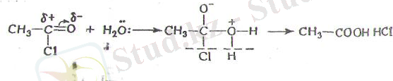 Механизмі жағынан осы реакциялардың барлығы да соңы-нан реакция нәтижесінде түзілген реакция комплексі ыдырап кететін нуклеофильдік қосылыс реакциялары болып табылады. Мысалы, хлорлы ацетилдің гидролизі мынадай схема бойынша жүреді.