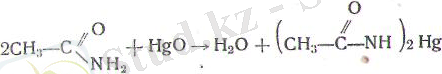 ә) амин тобының ЫН 2 сутегі металға г орнын едәуір оңай береді. Аіысалы, ацетамид сынап тотығымен әрекеттеседі.